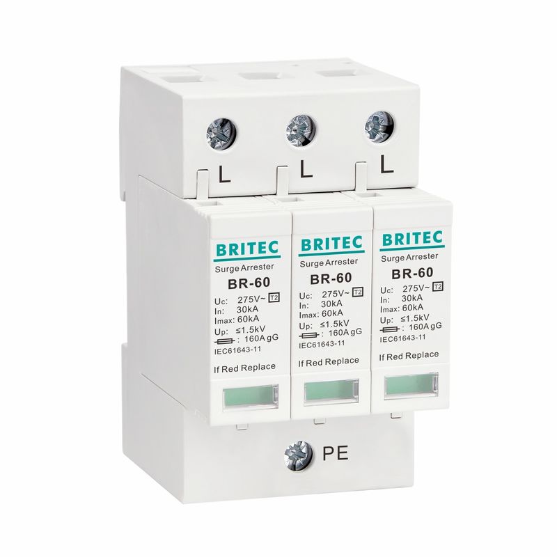 BRITEC 1P Class II SPD 60kA T2 Surge Arrester AC surge lightning protector surge protection device